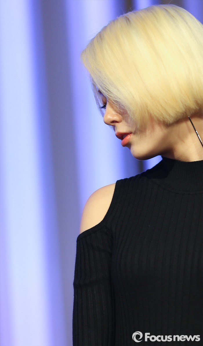 (서울=포커스뉴스) 24일 오전 서울 강남구 리버사이드 호텔에서 열린 걸그룹 레이디스 코드의 싱글앨범 '미스터리'(MYST3RY) 발표 쇼케이스에 참석한 멤버 주니가 포토타임을 갖고 있다.