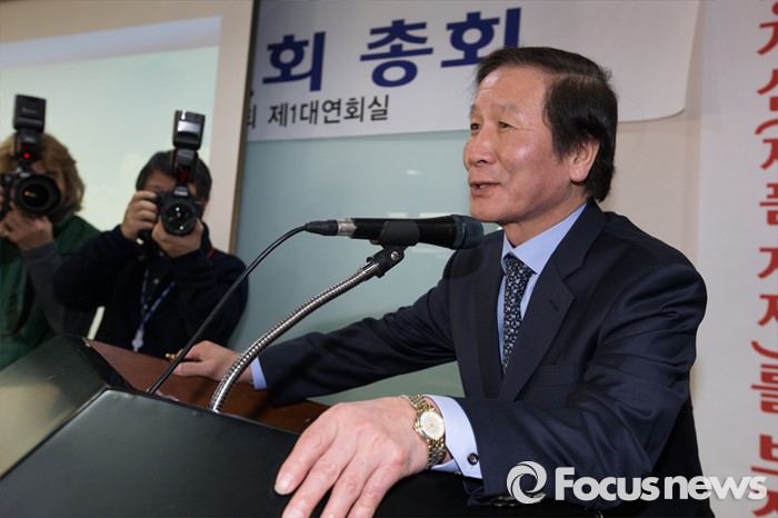 (서울=포커스뉴스) 정기섭 개성공단기업협회장이 24일 오전 서울 여의도 중소기업중앙회에서 열린 개성공단 기업 비상대책위원회 총회에 참석해 인사말을 하고 있다.