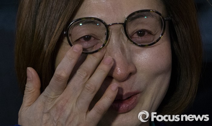 (서울=포커스뉴스) 24일 오후 서울 여의도 국회에서 테러방지법과 관련해 무제한 토론을 마친 은수미 더불어민주당 의원이 취재진과 인터뷰 중 눈시울이 붉어지고 있다.