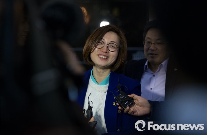 (서울=포커스뉴스) 24일 오후 서울 여의도 국회에서 테러방지법과 관련해 무제한 토론을 마친 은수미 더불어민주당 의원이 취재진과 인터뷰 중 환하게 웃고 있다.