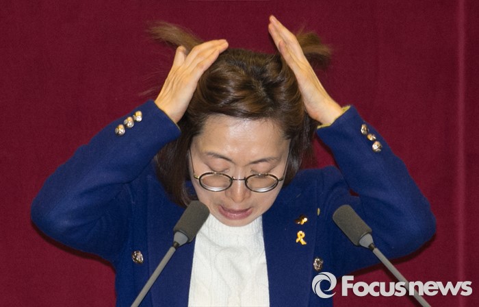 (서울=포커스뉴스) 테러방지법 직권상정에 반발해 야당의 무제한 토론(필리버스터)이 진행되고 있는 24일 오후 서울 여의도 국회 본회의장에서 토론에 참여한 은수미 더불어민주당 의원이 발언하고 있다. 은 의원은 이날 10시간 18분의 토론을 기록해 국내 최장기록인 10시간 15분을 경신했다.