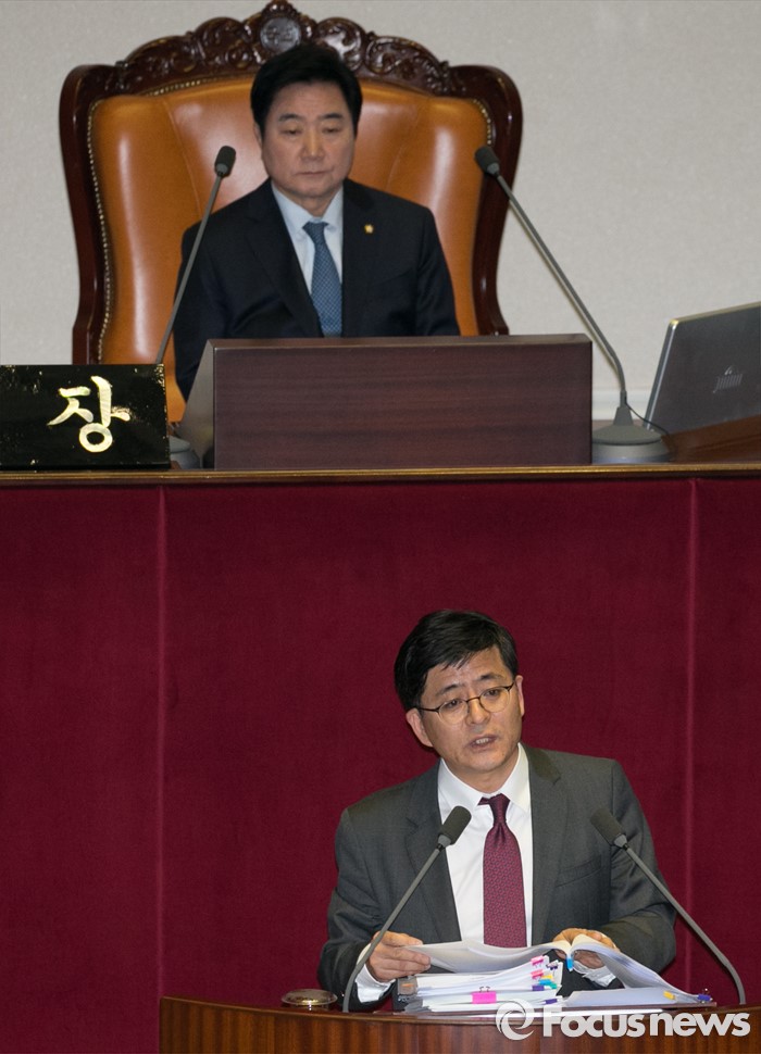 (서울=포커스뉴스) 테러방지법 직권상정에 반발해 야당의 무제한 토론(필리버스터)이 진행되고 있는 24일 오후 서울 여의도 국회 본회의장에서 토론에 참여한 박원석 정의당 의원이 발언하고 있다.