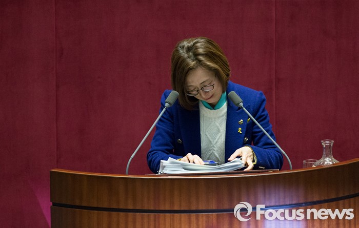 (서울=포커스뉴스) 테러방지법 직권상정에 반발해 야당의 무제한 토론(필리버스터)이 진행되고 있는 24일 오후 서울 여의도 국회 본회의장에서 토론에 참여한 은수미 더불어민주당 의원이 발언을 끝내고 눈물짓고 있다. 은 의원은 이날 10시간 18분의 토론을 기록해 국내 최장기록인 10시간 15분을 경신했다.
