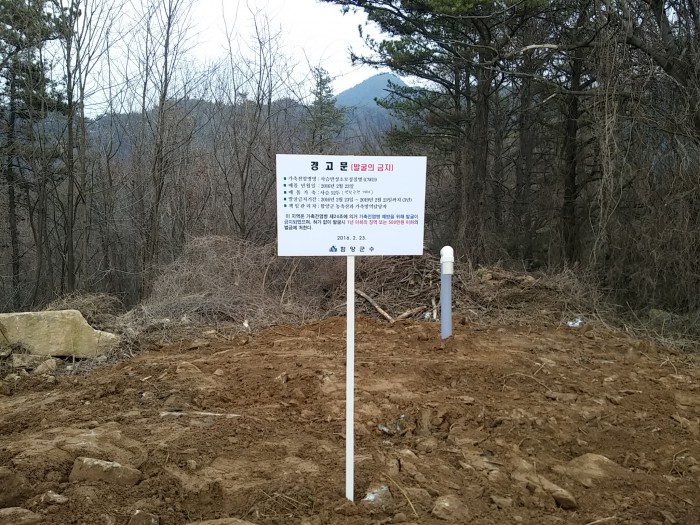 아울러 “현재 문제가 될 수 있는 부분은 국내산 사슴뿔(녹용)이 식품으로 사용되고 있는 부분”이라며 “특히 건조하지 않은 국내산 사슴뿔(생녹용)은 광록병 뿐 아니라 기생충 등 각종 감염의 위험성이 상존하므로 복용에 각별히 주의해야한다. 당분간 국내산 사슴뿔 특히 생녹용을 식품으로 섭취하는 것은 자제해야 할 것”이라고 주의를 당부했다.함양군이 세운 발굴금지 표지판.<사진제공=함양군> 2016.02.24 노상봉 기자