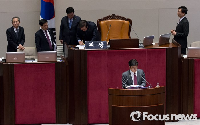 (서울=포커스뉴스) 테러방지법 직권상정에 반발해 야당의 무제한 토론(필리버스터)이 진행되고 있는 24일 오후 서울 여의도 국회 본회의장에서 박원석 정의당 의원이 발언하고 있다.