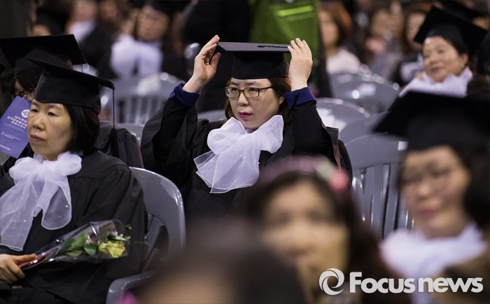 (서울=포커스뉴스) 24일 오후 서울 송파구 올림픽체조경기장에서 열린 '한국방송통신대학교 2015학년도 학위수여식'에 참석한 졸업생이 학사모를 고쳐쓰고 있다.