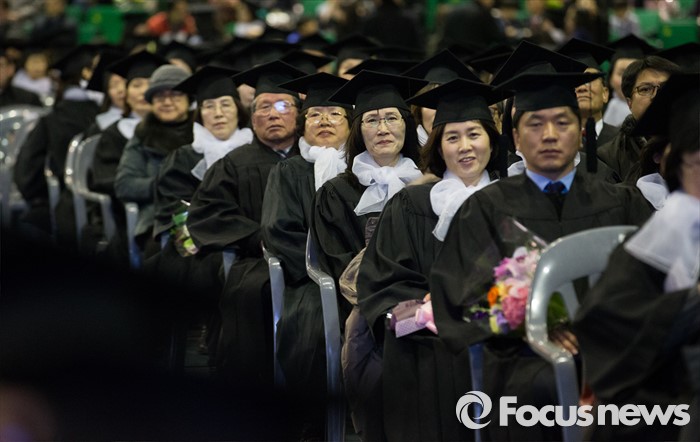 (서울=포커스뉴스) 24일 오후 서울 송파구 올림픽체조경기장에서 열린 '한국방송통신대학교 2015학년도 학위수여식'에 졸업생들이 참석하고 있다.