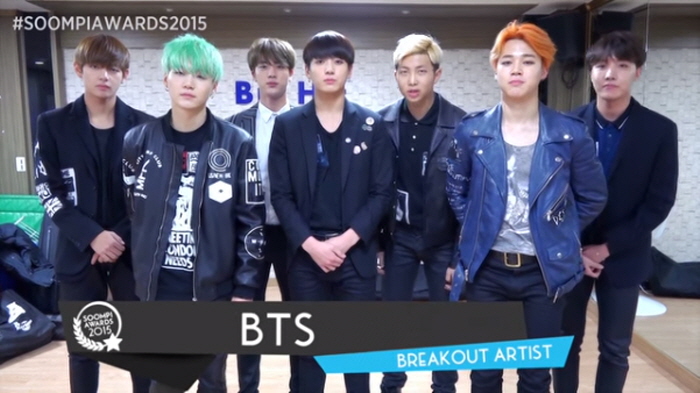 한편 방탄소년단은 지난해 청춘 2부작 ‘화양연화’ 시리즈로 큰 인기를 얻었다. 최근 SKT 광고모델로 발탁되는 등 활발한 활동을 벌이고 있다.그룹 방탄소년단이 영어권 최대 한류사이트 숨피에서 연 '2015 숨피어워즈'에서 3관왕에 올랐다. <사진제공=빅히트엔터테인먼트>