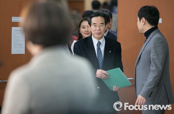 | △ 정론관 들어서는 홍창선 공천관리위원장 |