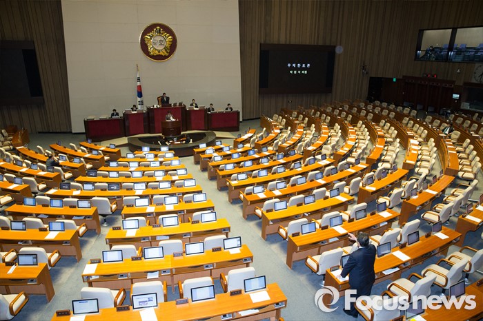 (서울=포커스뉴스) 테러방지법 직권상정에 반발해 야당의 무제한 토론(필리버스터)이 진행되고 있는 24일 오후 서울 여의도 국회 본회의장에서 토론을 진행중인 박원석 정의당 의원을 향해 조원진 새누리당 원내수석부대표가 항의를 하고 있다.