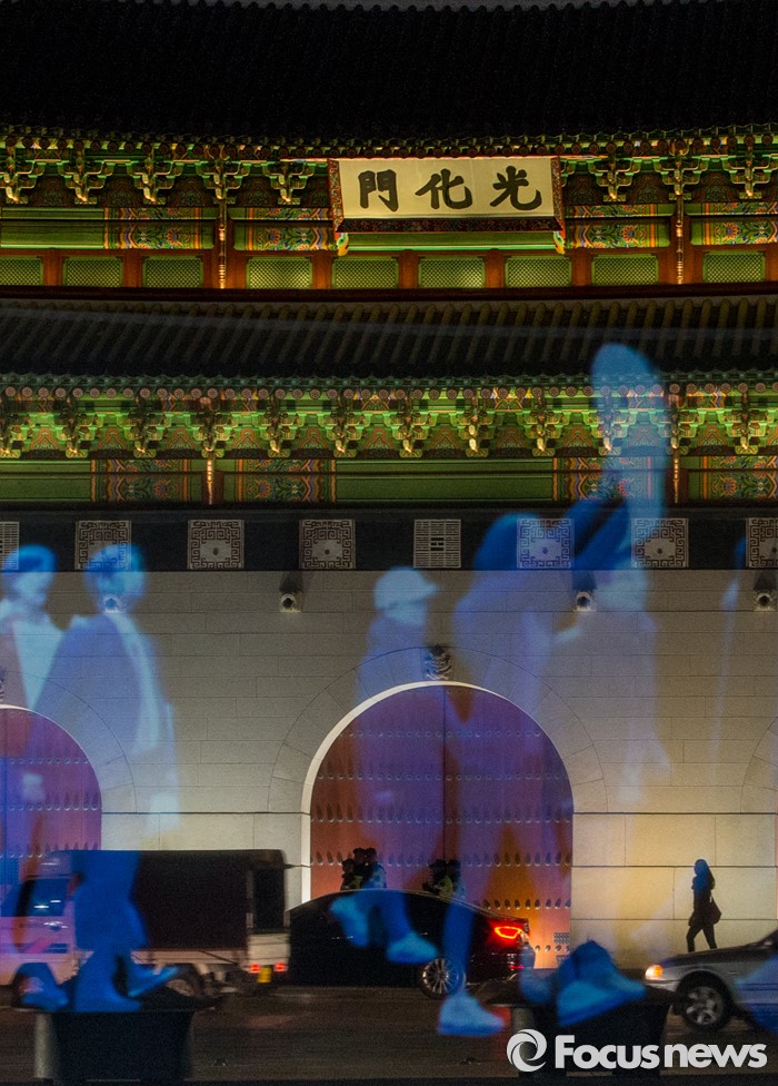 (서울=포커스뉴스) 24일 오후 서울 광화문광장에서 3차원 영상(홀로그램)을 이용해 열린 '2ㆍ24 앰네스티 유령집회'에서 '집회ㆍ시위 자유를 보장하라'는 주제의 영상이 스크린에 영사되고 있다.