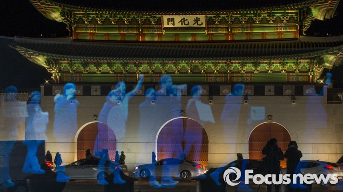 (서울=포커스뉴스) 24일 오후 서울 광화문광장에서 3차원 영상(홀로그램)을 이용해 열린 '2ㆍ24 앰네스티 유령집회'에서 '집회ㆍ시위 자유를 보장하라'는 주제의 영상이 스크린에 영사되고 있다.