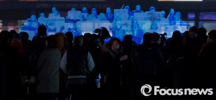 (서울=포커스뉴스) 24일 오후 서울 광화문광장에서 3차원 영상(홀로그램)을 이용해 열린 '2ㆍ24 앰네스티 유령집회'에서 '집회ㆍ시위 자유를 보장하라'는 주제의 영상이 스크린에 영사되고 있다.