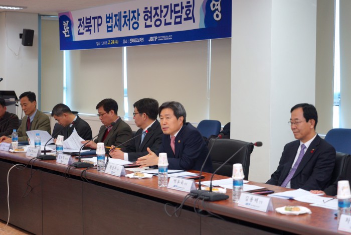 (서울=포커스뉴스) 법제처는 24일 전북 테크노파크에서 첨단산업 관련 기업 등과 함께 ‘첨단과학기술산업 관련 법령정비 제안’이란 주제로 현장 간담회를 개최했다고 25일 밝혔다