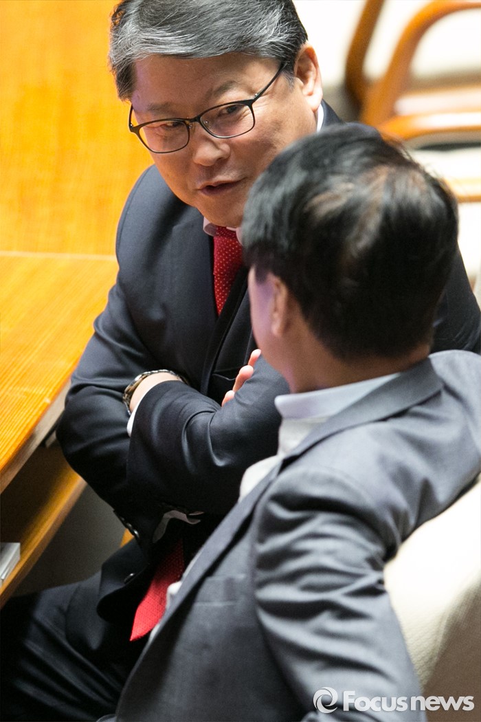 | △ 조원진·한선교, 본회의장 대화 |