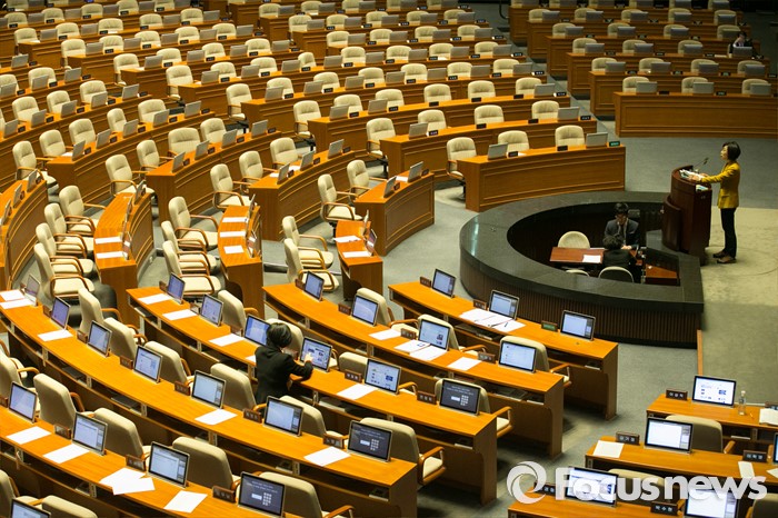 (서울=포커스뉴스) 김제남 정의당 의원이 25일 오전 서울 여의도 국회 본회의장에서 테러방지법 저지를 위한 무제한 토론(필리버스터)을 하고 있다.