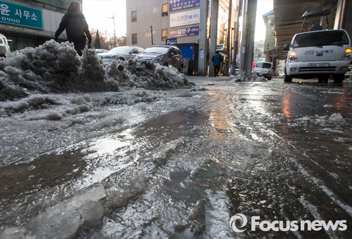 | △ 누수로 꽁꽁 언 도로 |