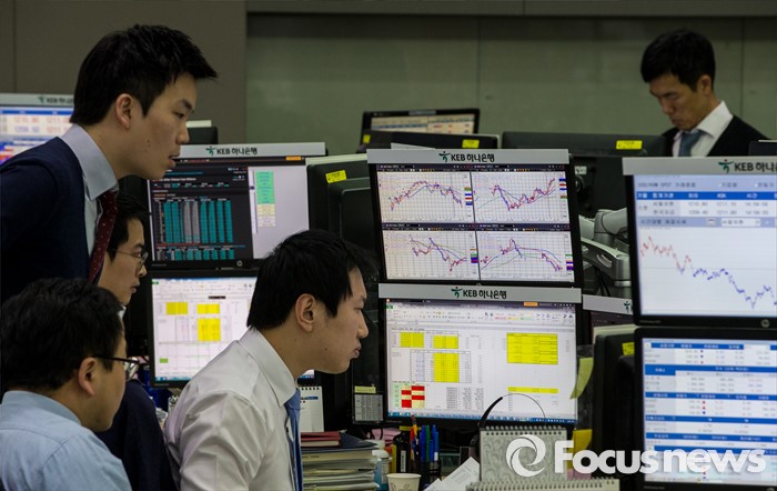 반면 우리나라의 해외투자는 크게 늘었다. 원화 가치 하락에도 해외 직접투자가 늘면서 지난해말 대외투자잔액은 1조1399억달러로, 전년대비 579억달러 증가했다.(서울=포커스뉴스)서울 중구 KEB하나은행 딜링룸에서 딜러들이 환율 상황을 점검 하고 있다.강진형 기자