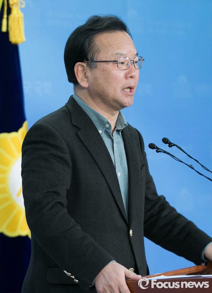 (서울=포커스뉴스) 김부겸 더불어민주당 대구 수성갑 예비후보가 25일 오후 서울 여의도 국회 정론관에서 컷오프에 반발해 탈당한 홍의락 의원에 대한 공천 배제 조치 취소를 요구하는 기자회견을 하고 있다. 홍 의원은 대구 북구을에 출마를 준비해왔다.