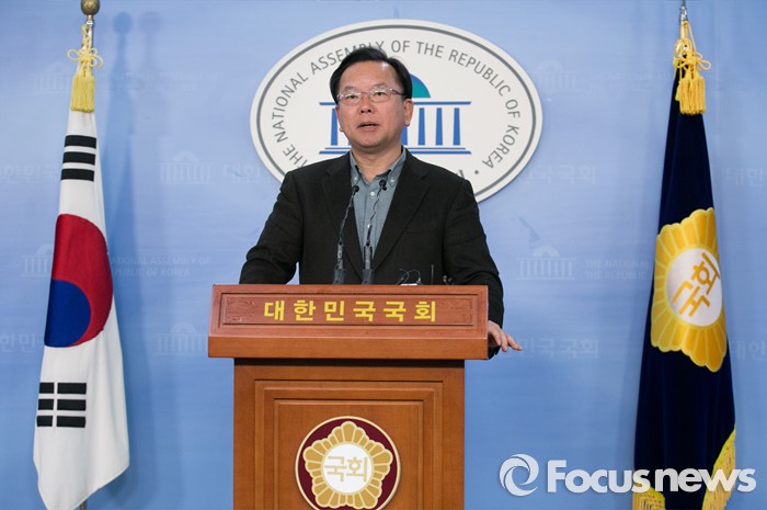 (서울=포커스뉴스) 김부겸 더불어민주당 대구 수성갑 예비후보가 25일 오후 서울 여의도 국회 정론관에서 컷오프에 반발해 탈당한 홍의락 의원에 대한 공천 배제 조치 취소를 요구하는 기자회견을 하고 있다. 홍 의원은 대구 북구을에 출마를 준비해왔다.