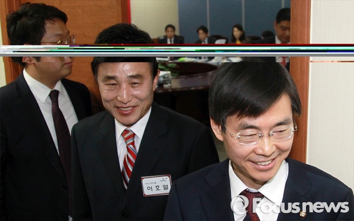 (서울=포커스뉴스) 25일 오전 서울 여의도 새누리당사에서 20대 총선 공천 신청자 면접심사를 마친 조경태(오른쪽), 이호열 부산 사하을 예비후보가 심사장을 나서고 있다