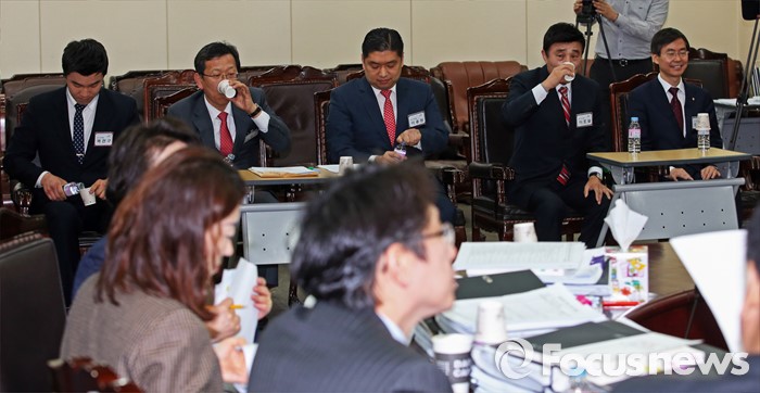 (서울=포커스뉴스) 25일 오전 서울 여의도 새누리당사에서 열린 20대 총선 공천 신청자 면접심사에 참석한 부산 사하을 예비후보들이 공관위원들의 질문에 답하고 있다.