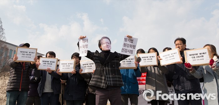 (서울=포커스뉴스) 25일 오후 서울 여의도 국회의사당 앞에서 테러방지법 제정을 반대하는 시민사회단체들이 정의화 국회의장 가면 착용 후 테러방지법 폐기 퍼포먼스를 하고 있다.