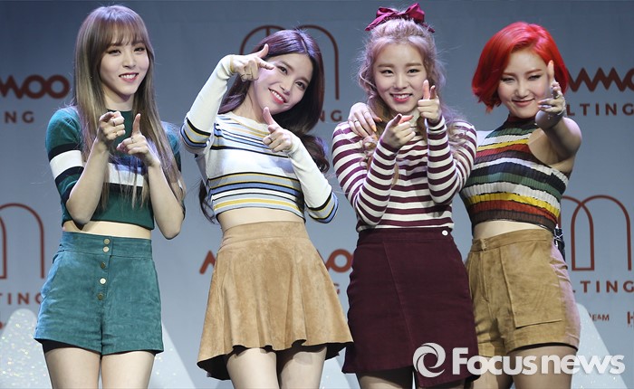 걸그룹 마마무가 25일 서울 마포구 합정동 예스24무브홀에서 첫 번째 정규앨범 ‘멜팅(Melting)’ 발매 기념 쇼케이스를 열고 최근 뜨거운 인기 비결에 대한 생각을 털어놨다. 마마무(솔라·문별·휘인·화사)는 데뷔 1년8개월 만에 팬카페 가입자 수 5만을 넘기며 탄탄한 팬덤을 형성하고 있다.