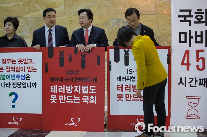 | △ 필리버스터 반대 시위하는 여당 의원들과 김제남 의원 |