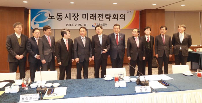 (서울=포커스뉴스) 이기권 고용노동부 장관이 25일 오전 서울 중구 은행연합회관에서 열린 '노동시장 미래전략회의'에 참석, 우리나라 노동시장의 지형과 과제 및 청년고용 문제, 저성장․구조조정기의 고용정책 등을 논의 하고 있다. 이날 회의에는 한국개발연구원(KDI), 노동연구원, 산업연구원, 보건사회연구원, 조세재정연구원, 금융연구원, 한국고용정보원, 직업능력개발원 등이 참석했다. <사진제공=고용노동부>