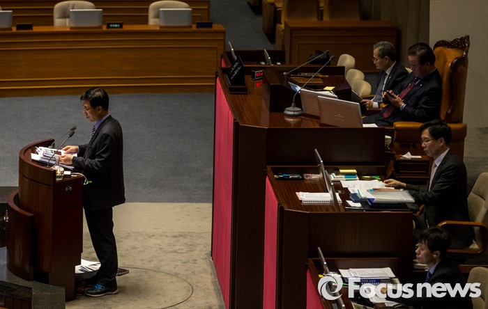 (서울=포커스뉴스) 테러방지법 직권상정에 반발해 야당의 무제한 토론(필리버스터)이 사흘째 진행되고 있는 25일 오후 서울 영등포구 국회 본회의장에서 신경민 더불어민주당 의원이 발언을 하고 있다.