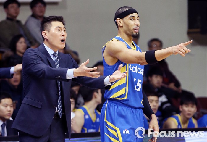 (안양=포커스뉴스) 25일 안양실내체육관에서 열린 2015-2016 프로농구 6강 플레이오프 KGC-삼성 1차전에서 삼성 이상민 감독과 문태영이 심판의 파울 판정에 항의하고 있다.