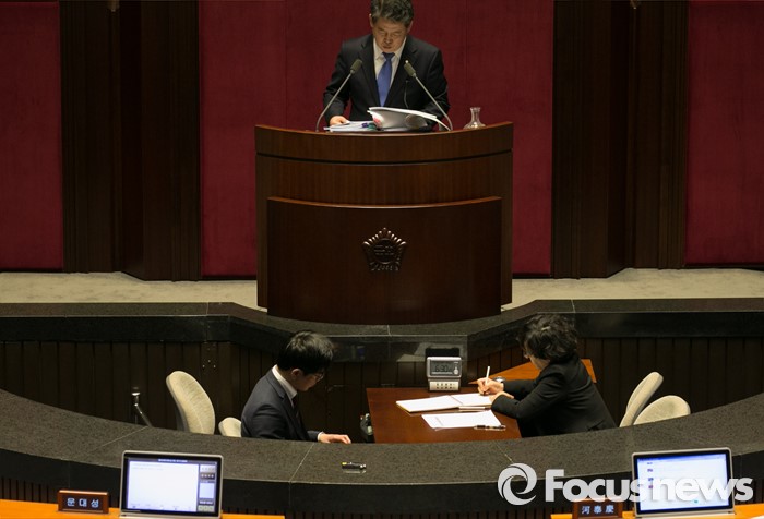 (서울=포커스뉴스) 테러방지법 직권상정에 반발해 야당의 무제한 토론(필리버스터)이 나흘째 진행되고 있는 26일 오전 서울 여의도 국회 본회의장에서 의원들의 발언을 기록하는 속기사들이 근무를 이어가고 있다.