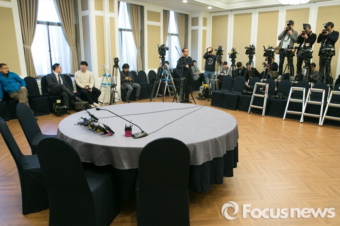 (서울=포커스뉴스) 선거구획정과 쟁점법안 논의를 위한 여·야 대표, 원내대표 2+2 회동이 무산된 26일 오전 서울 여의도 국회 귀빈식당에 취재를 위한 마이크만 놓여 있다.