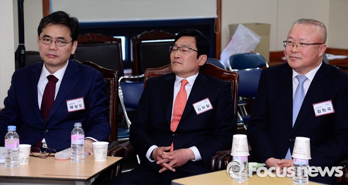 (서울=포커스뉴스) 26일 오전 서울 여의도 새누리당사에서 열린 20대 총선 공천 신청자 면접심사에 참석한 대구 중구남구 예비후보들이 면접 시작을 기다리고 있다. 왼쪽부터 곽상도, 김휘일 예비후보, 김희국 의원.