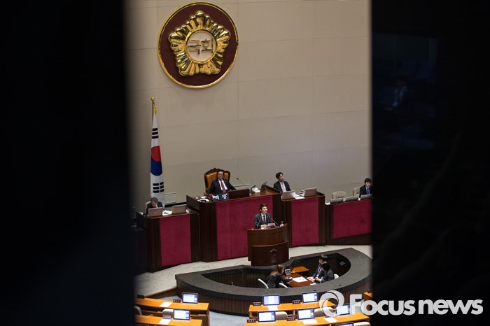 (서울=포커스뉴스) 테러방지법 직권상정에 반발해 야당의 무제한 토론(필리버스터)이 나흘째 진행되고 있는 26일 오전 서울 여의도 국회 본회의장에서 토론에 참여한 서기호 정의당 의원이 발언하고 있다.