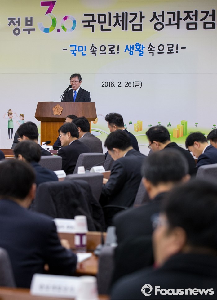(서울=포커스뉴스) 26일 오후 서울 중구 정부서울청사 별관에서 열린 '2016년 제1회 정부3.0 국민체감 성과점검회의'에 참석한 송희준 정부3.0추진위원장이 격려사를 하고 있다.