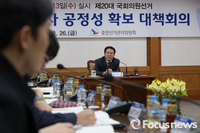 (과천=포커스뉴스) 김신기 선거정책실장이 26일 오후 경기도 과천시 중앙선거관리위원회에서 열린 선거여론조사 공정성 확보 대책회의에서 모두발언을 하고 있다.
