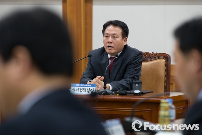 (과천=포커스뉴스) 김신기 선거정책실장이 26일 오후 경기도 과천시 중앙선거관리위원회에서 열린 선거여론조사 공정성 확보 대책회의에서 인사말을 하고 있다.