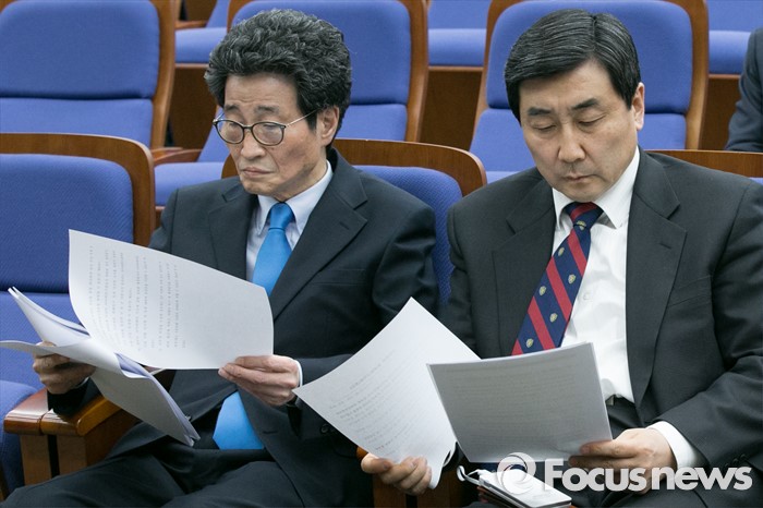 (서울=포커스뉴스) 이종걸(오른쪽) 더불어민주당 원내대표와 이목희 정책위의장이 26일 오후 서울 여의도 국회에서 열린 의원총회에 참석해 문서를 보고 있다.