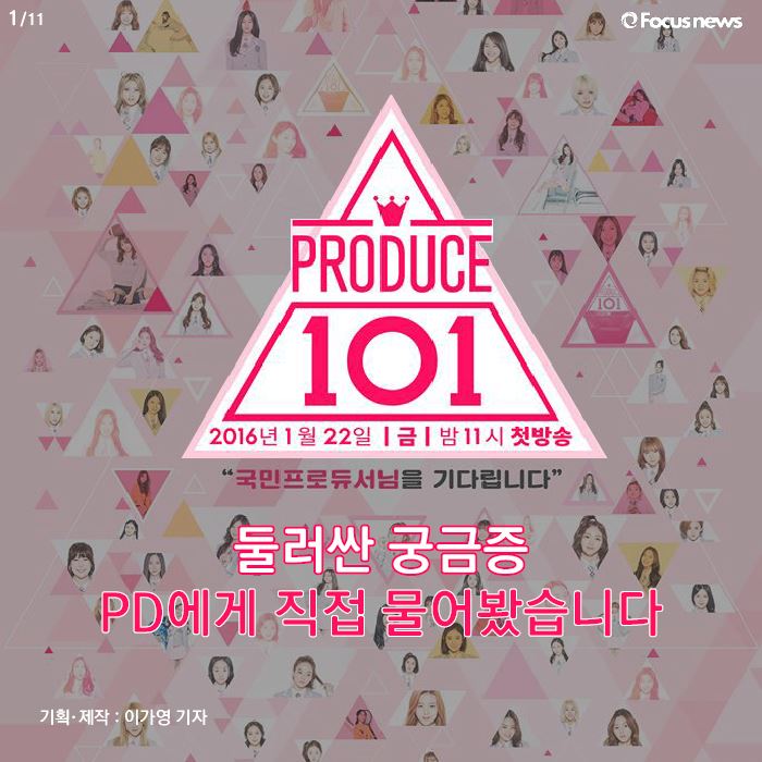 (서울=포커스뉴스) '프로듀스 101'의 인기가 심상치 않습니다. CJ E&M과 닐슨코리아가 함께 개발한 콘텐츠파워지수(CPI) 2월 2주차에서는 국민 예능 ‘무한도전’을 제치고 1위를 차지했습니다. 굿데이터코퍼레이션에 따르면 TV화제성(비드라마 부문)에서도 1위를 차지했습니다. 인기가 많은 만큼 논란도 많고, 프로그램을 둘러싼 궁금증도 많습니다. 그래서, 담당 PD에게 직접 물어봤습니다.