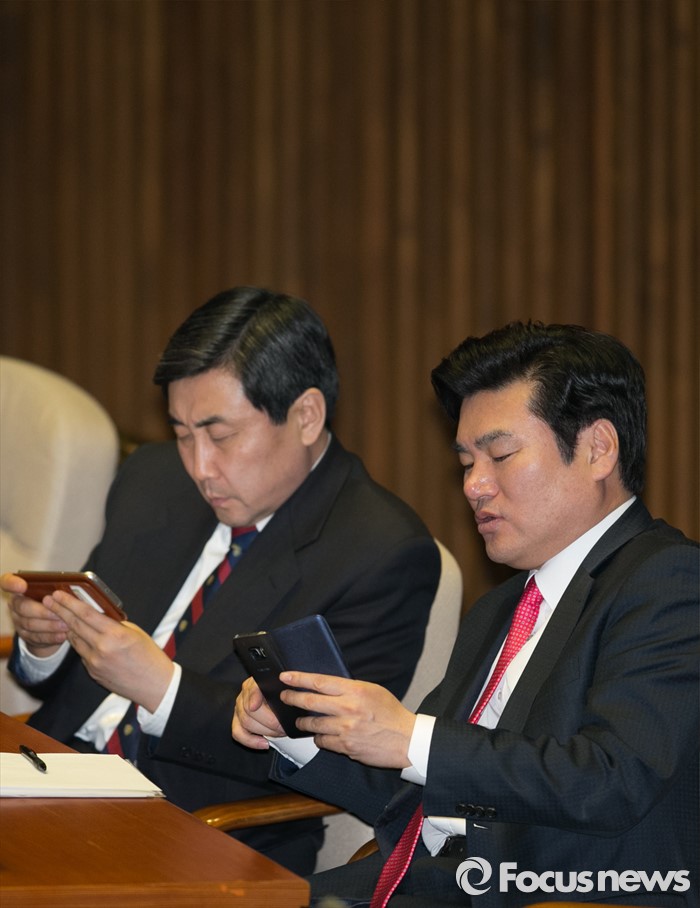 | △ 여야 원내대표, 핸드폰 삼매경? |
