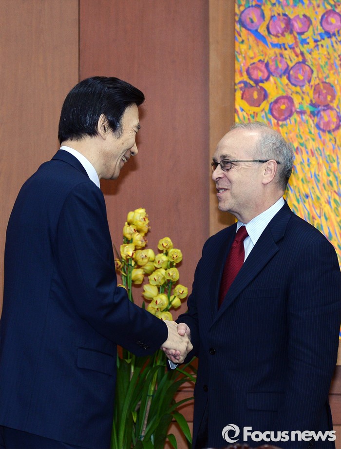 (서울=포커스뉴스) 26일 오후 서울 종로구 외교부 청사에서 윤병세(왼쪽) 외교부 장관과 대니얼 러셀 미국 국무부 동아시아태평양담당 차관보가 악수하고 있다.