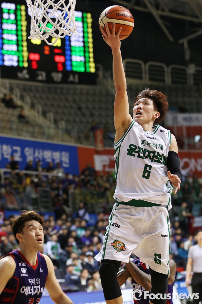 (고양=포커스뉴스) 26일 고양체육관에서 열린 2015-2016 프로농구 오리온-동부 6강 플레이오프 1차전에서 동부 두경민이 노마크 찬스에서 레이업슛을 시도하고 있다.