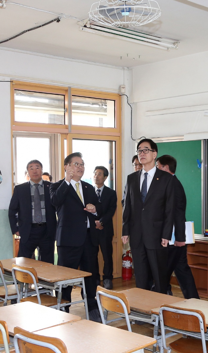 (대구=포커스뉴스) 이준식 부총리 겸 교육부장관이 26일 대구 수성구 동천초등학교를 방문, 신학기 대비 안전점검을 하고 있다. <사진제공=교육부>