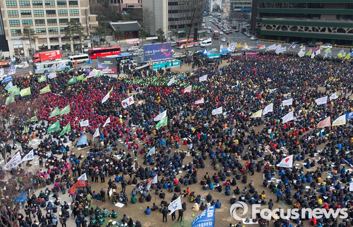 (서울=포커스뉴스) 27일 오후 서울광장에서 민주노총과 참여연대, 전국빈민연합 등 시민사회단체들이 4차 민중총궐기 집회에 참가하고 있다.
