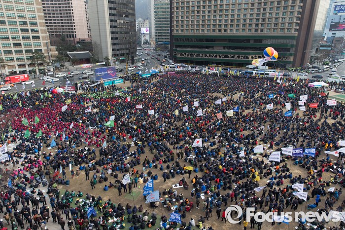 (서울=포커스뉴스) 27일 오후 서울광장에서 민주노총과 참여연대, 전국빈민연합 등 시민사회단체들이 4차 민중총궐기 집회에 참가하고 있다.