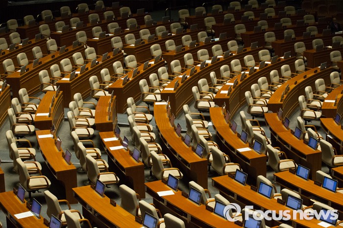 (서울=포커스뉴스) 테러방지법 직권상정에 반발해 야당의 무제한 토론(필리버스터)이 진행되고 있는 28일 오후 서울 여의도 국회 본회의 장에서 23번째 토론에 참여한 이학영 더불어민주당 의원이 발언하고 있는 가운데 국회의원석이 비어있다.