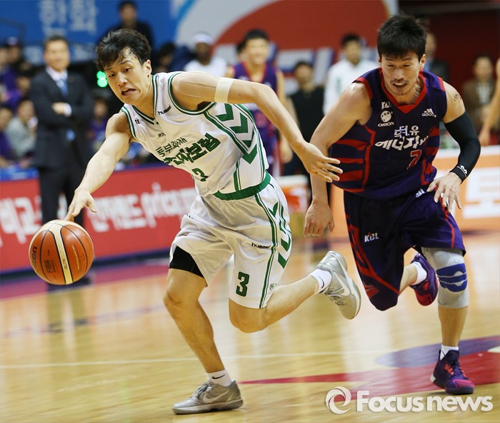 (고양=포커스뉴스) 28일 고양체육관에서 열린 2015-2016 프로농구 오리온-동부 6강 플레이오프 2차전에서 동부 허웅이 오리온 이현민의 볼을 가로채 골밑을 향해 드리블하며 돌파를 시도하고 있다.