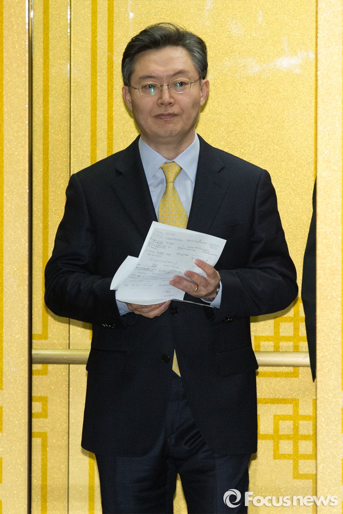 (서울=포커스뉴스) 우리 측 수석대표인 황준국 외교부 한반도평화교섭본부장은 28일 오후 서울 종로구 외교부 청사에서 북핵 6자회담의 중국 측 수석대표인 우다웨이 중국 외교부 한반도사무특별대표와의 면담을 끝내고 엘레베이터에서 내리고 있다.